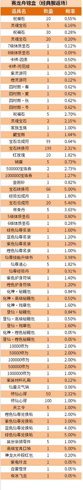 赛龙舟锦盒(经典服返场)概率公示